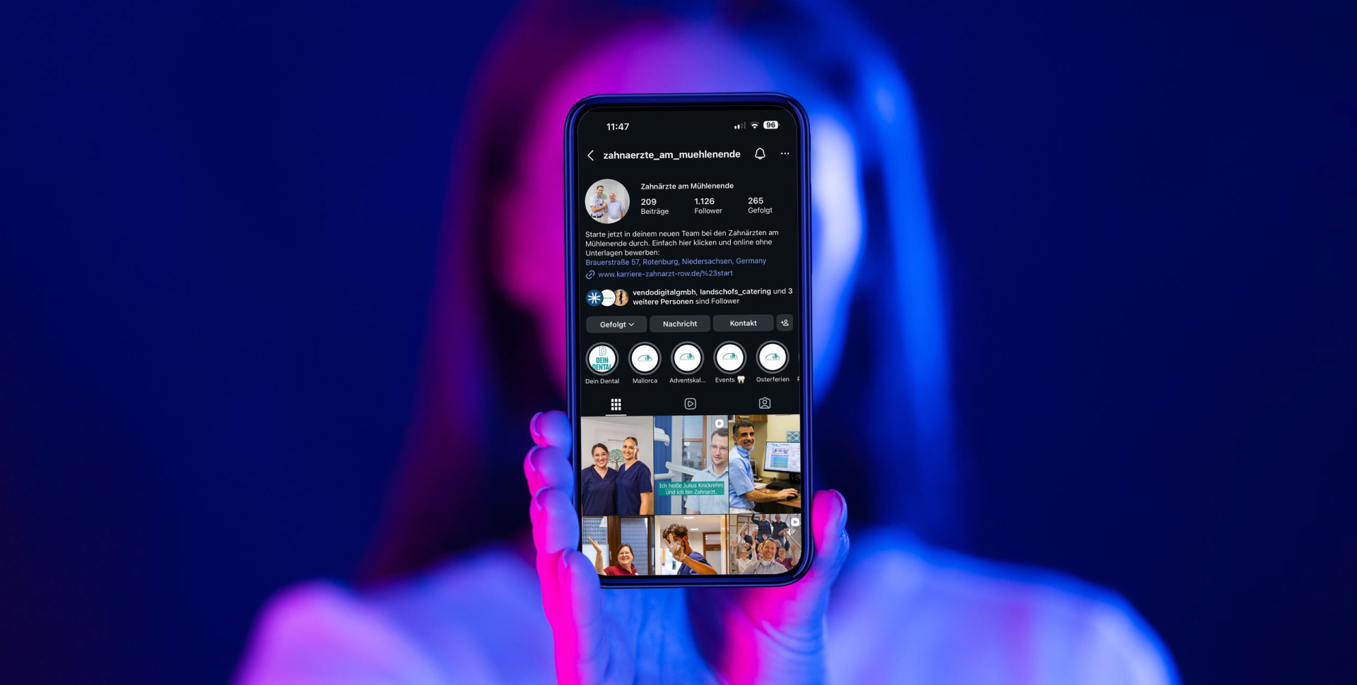 Als Social-Media-Agentur in Rotenburg (Wümme) kombinieren wir strategisches Know-how mit eigener Content-Produktion inklusive professioneller Videoproduktion, die den Unterschied zwischen „auch mal was gepostet“ und „echt aufgefallen“ ausmacht.